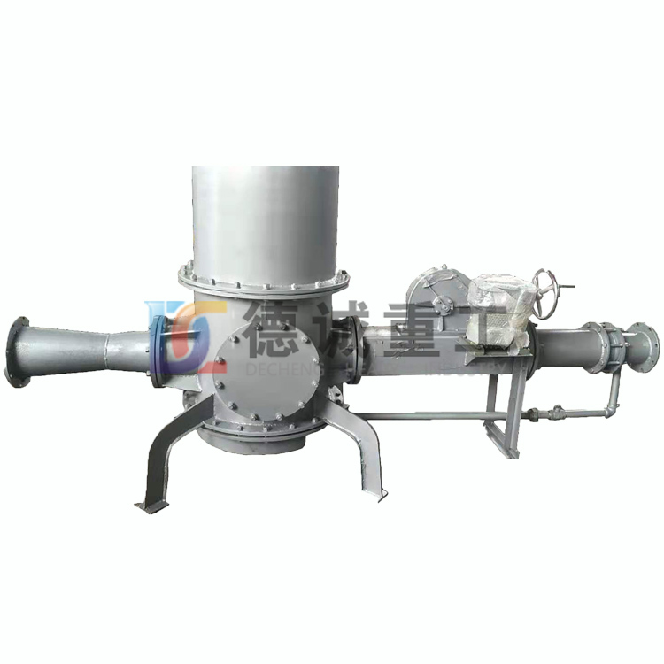 氣動送粉機主 要包括減速傳動裝置、料筒、噴射管、噴嘴、擴壓管和流化室。首先噴射管將空氣或空氣與物料混合體導入空氣噴嘴。噴嘴將空氣的壓力能轉化為空氣的動能,利用 空氣流的引射作用在噴嘴的出口附近造成局部負壓,將物料吸入輸送管道,并在擴壓管中將空氣動能轉化為壓力。齒輪減速傳動裝置對噴嘴位置進行調節,以此來調 節物料的輸送量。料筒底部的流化室對料筒的物料進行局部流化利于物料的輸送。送粉機工作輸送物料能量除來自于空氣動能外,物料高度也是重要的影響因素,料 位高、則勢能大,輸送量相應就大,反之則小。所以氣動送粉機具有一定的自我調節能力。